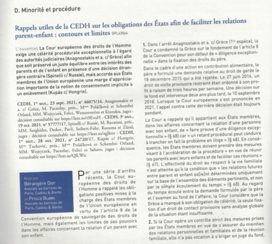 Retrouvez l’intégralité de l’article sur le  » Rappels utiles de la CEDH sur les obligations des Etats afin de faciliter les relations parent-enfant : contours et limites » dans la Gazette du Palais, janvier 2022, n°1, pages 64 et 65
